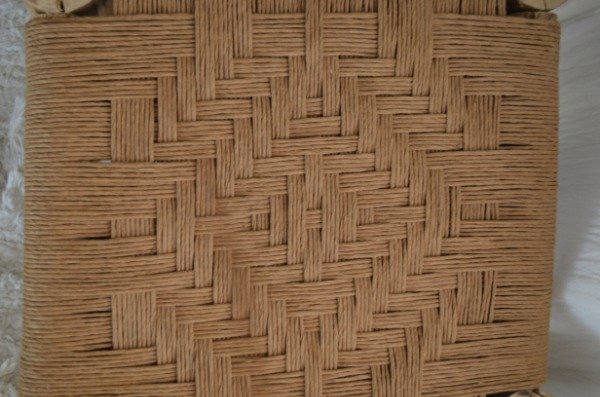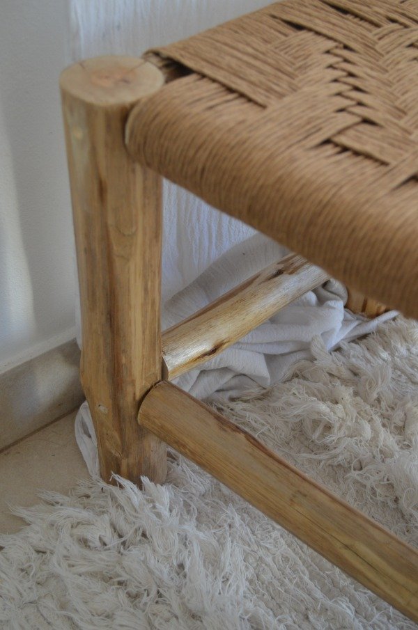 Banco matero con diseño pampa, confeccionado con hilo kraft marrón y una estructura cuadrada de eucalipto.