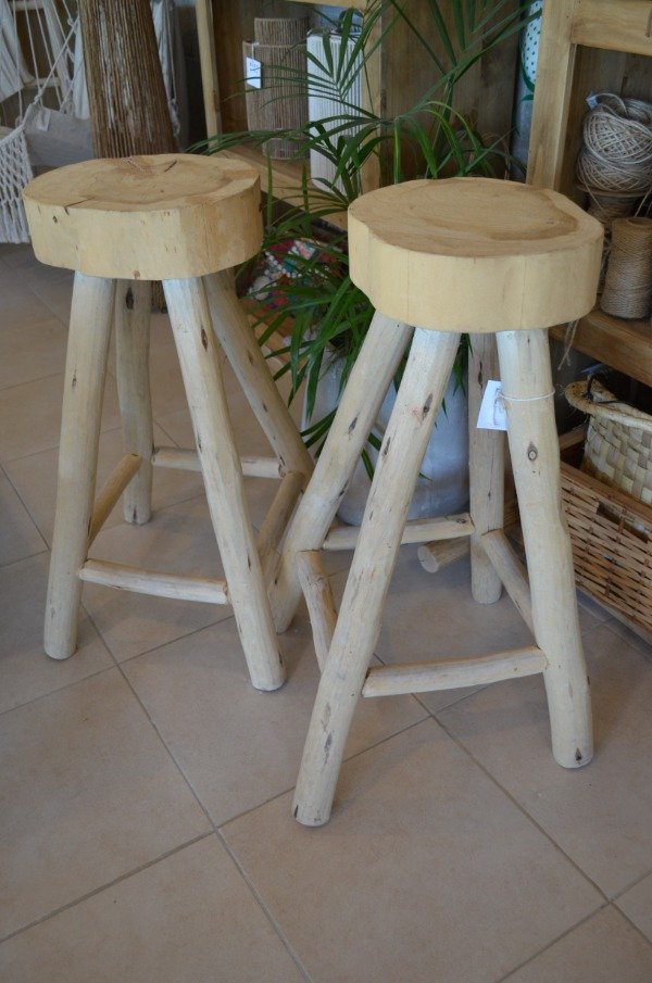 Banquetas para barra rústicas hechas artesanalmente con madera de ciprés.