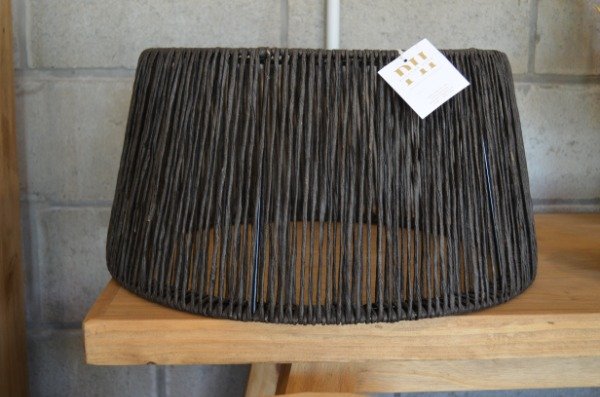 Lámpara hecha con hilo kraft negro y estructura negra.