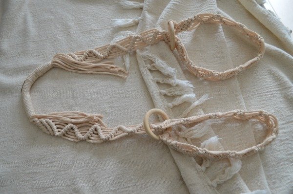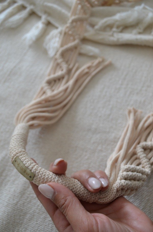 Porta mat de yoga en macrame confeccionado con cordon de polipropileno.