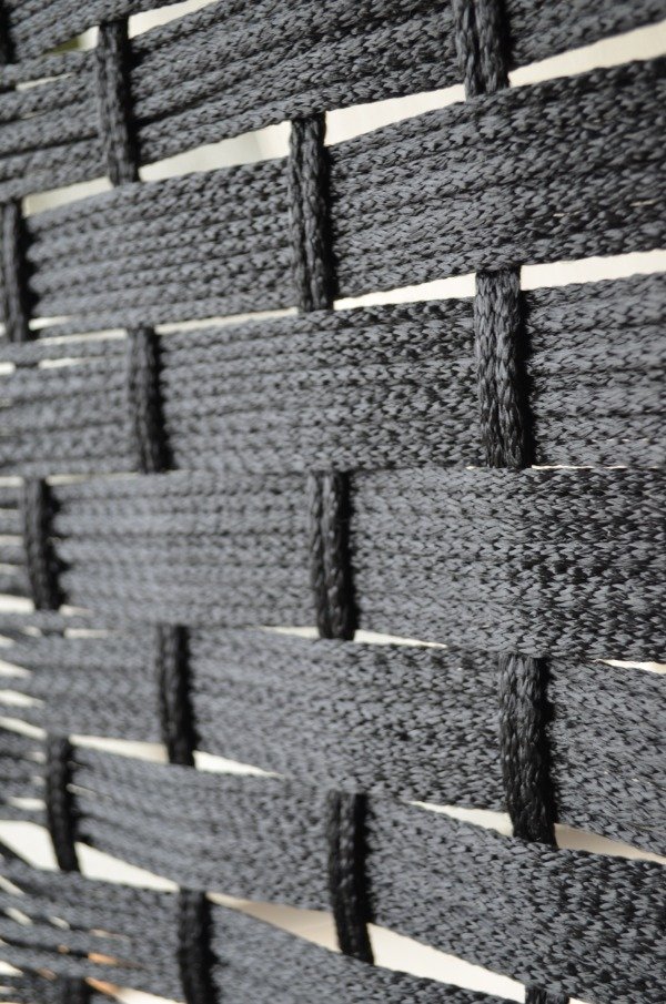 Sillas con diseño encordado entrelazado confeccionadas con cordon de polipropileno.