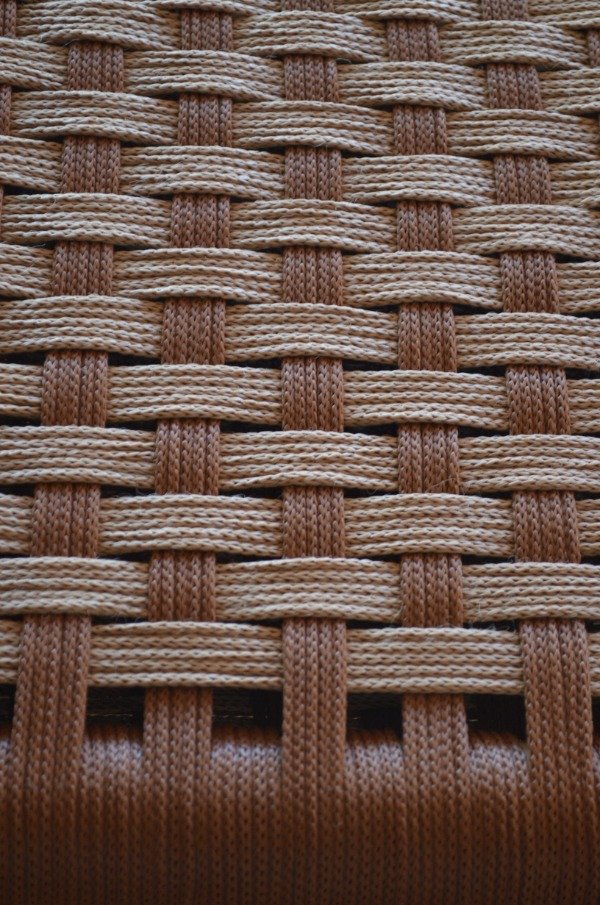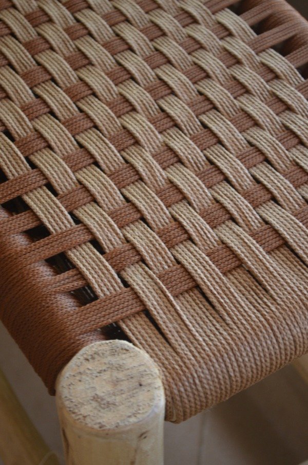Banco de campo tejido a mano con cordon de polipropileno marrón combinado.