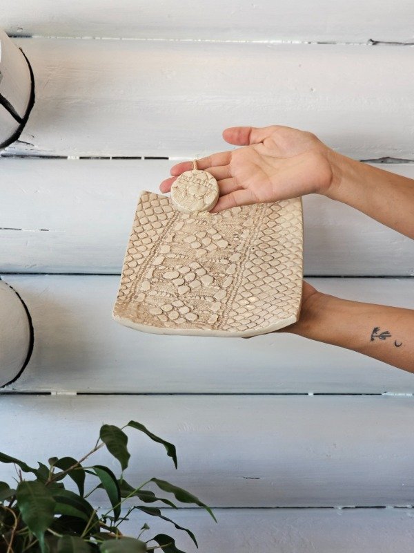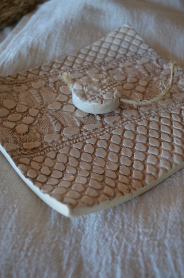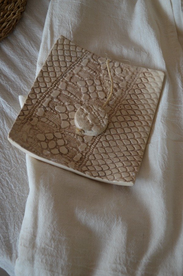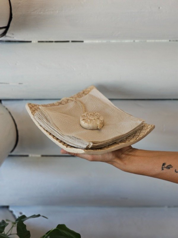 Servilletero artesanal de cerámica color crudo