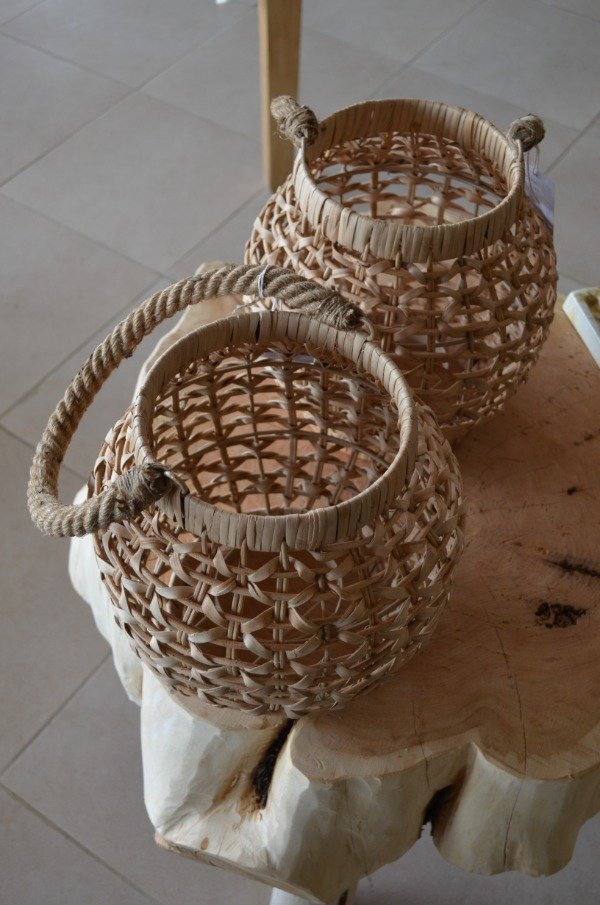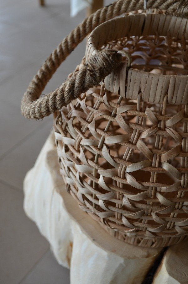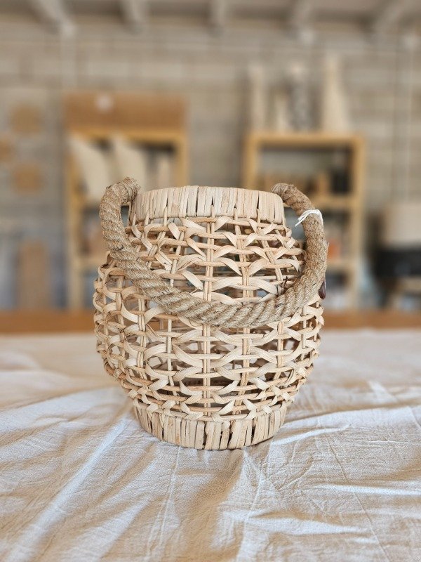 Fanal producido con jacinto de agua y bamboo. Cuenta con estructura metalica para agregar una vela o luz.