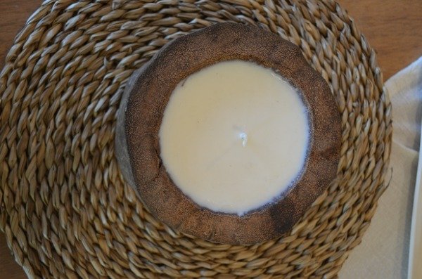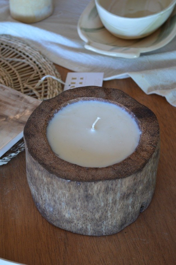 Vela de soja hecha artesanalmente en madera de palmera