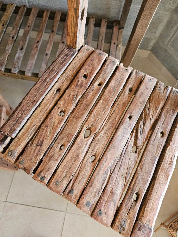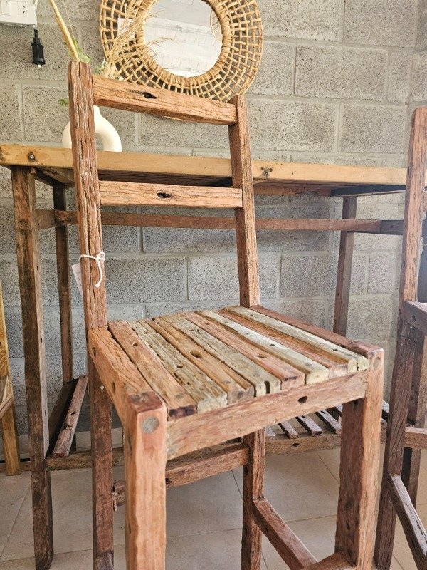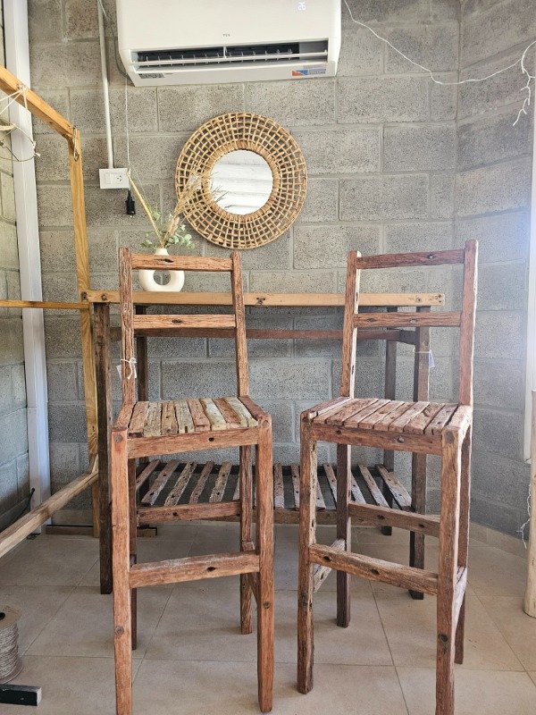 Banquetas para barra confeccionadas artesanalmente con quebracho colorado, madera recuperada de hace más de 100 años.